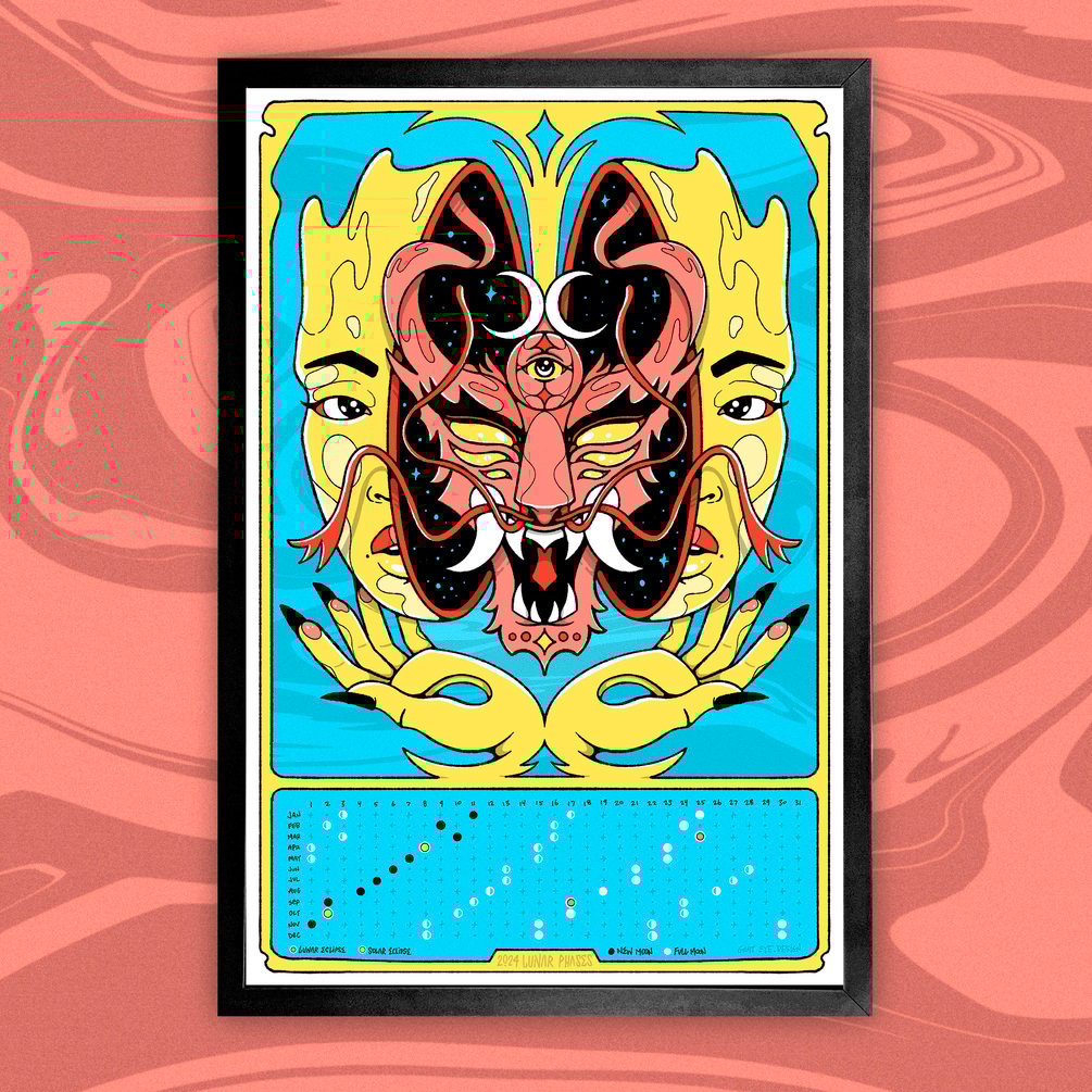 2024 Lunar Phases from vantage point of Denver, CO. 12 x 18 inches, printed on card stock.